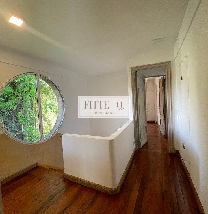En planta alta: hall con gran ventanal, suite principal con vestidor, baño con jacuzzi y espectacular vista al jardín. Segunda suite con baño completo y dos dormitorios adicionales que comparten otro baño, uno con balcón. Calefacción por radiadores y pisos de madera.
