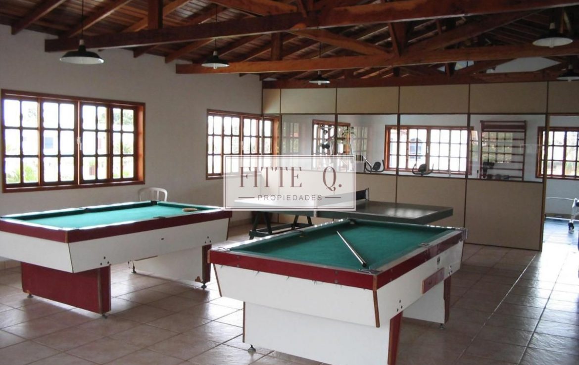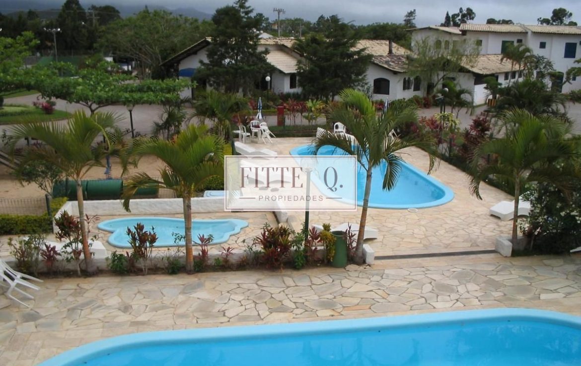 Complejo Resort = pileta al aire libre, canchas tenis, sum juegos para chicos, gym, bar y un lindisimo jardín.