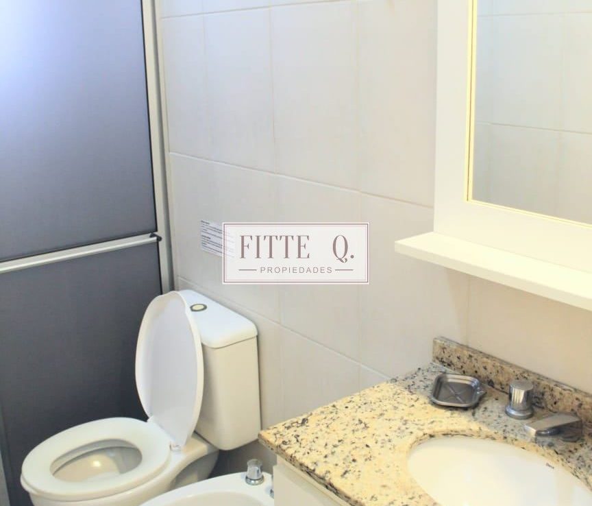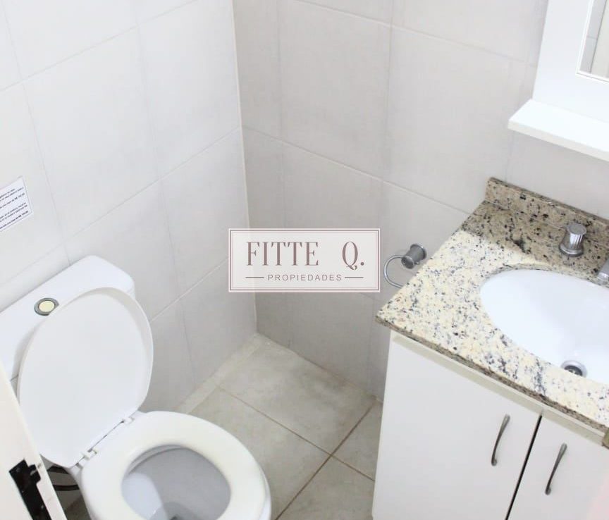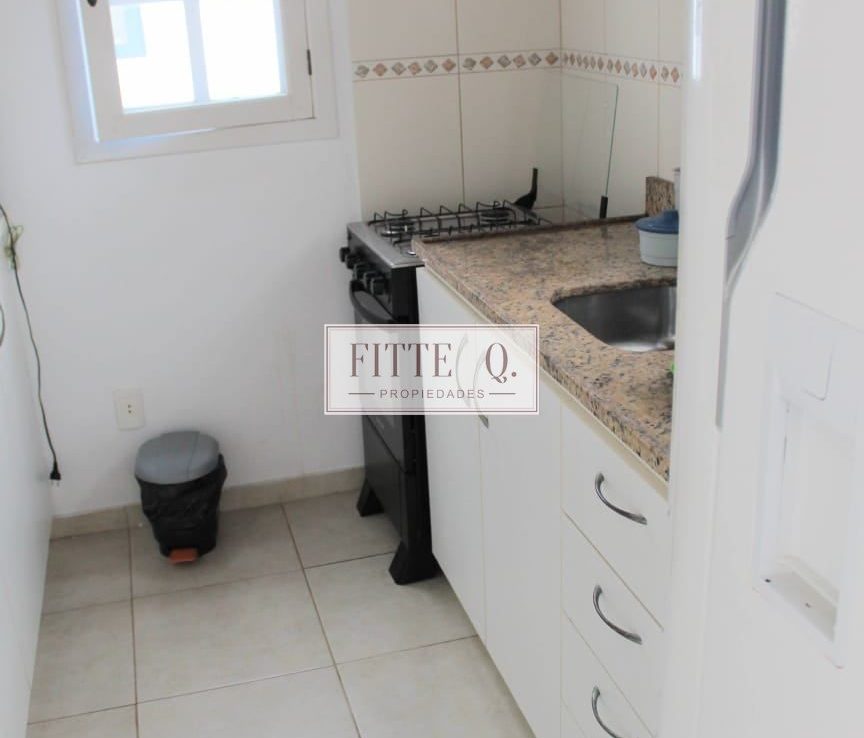 2 dormitorios – bano completo- living – cocina incorporada – cochera – jardincito con parrilla y solárium.