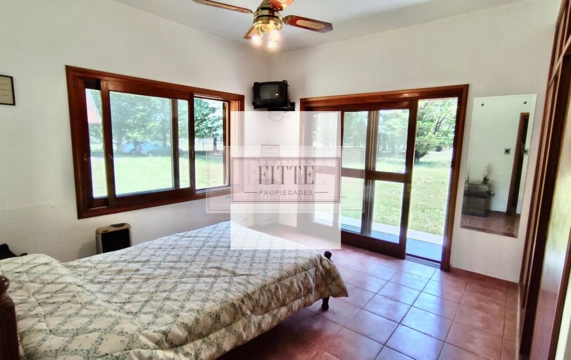 .Amplia cocina, living comedor, galería, parrilla. Dos dormitorios, tres baños. En el exterior, la casa ofrece un gran jardín parquizado con gran variedad de arboles álamos, pinos, etc. sobre un lote de 1,2 has. (12.000m2). con un frente de 70,51m2 x 166m2 de fondo aproximados. La propiedad tiene 12 años de antigüedad y orientación NE, destacándose su luminosidad. Cuenta con garaje cubierto para dos autos. Dispone de internet/wifi, gas envasado, molino de agua, pozo ciego. Ubicado en el exclusivo complejo CHACRAS DE LA ALAMEDA, en el kilómetro 145 de la autopista nacional N° 7, en la localidad de Carmen de Areco, a tan sólo una hora y media de la Ciudad Autónoma de Bs. As., ideal para quienes buscan un refugio en la naturaleza. CHACRAS DE LA ALAMEDA se destaca por su arboleda de antaño. La rica reserva natural que rodea el lugar, habitada por manadas de ciervos axis, ofrece un entorno único que atrae tanto a grandes como a chicos, convirtiendo cada visita en una experiencia memorable. Los propietarios de Chacras de La Alameda disfrutan de diversas actividades al aire libre y de los servicios que ofrece el casco centenario, transformado en una acogedora posada. Este espacio no solo permite a los propietarios y sus familias pasar agradables fines de semana, sino que también brinda la oportunidad de disfrutar de la gastronomía local, elaborando pan en un horno de barro o degustando los productos frescos de la huerta. Con una infraestructura que incluye un Club House con habitaciones para huéspedes, restaurante, canchas de tenis, fútbol, polo, así como un lago artificial y piscina, el complejo garantiza una experiencia de vida rodeada de naturaleza y tranquilidad, a solo una hora y media de la Capital Federal. es una excelente oportunidad para aquellos que buscan invertir en un lugar donde el bienestar y la conexión con la naturaleza son prioritarios. La seguridad es otro aspecto destacado del complejo, que cuenta con vigilancia las 24 horas, asegurando la tranquilidad y el disfrute de todos sus habitantes.