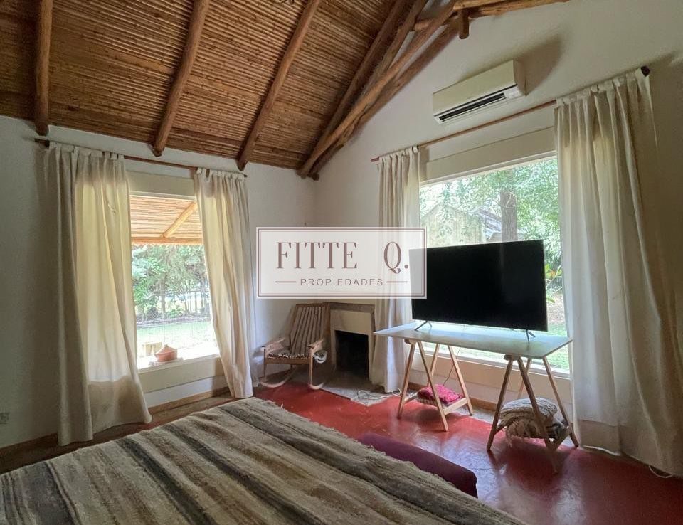 .Sobre un lote de 935,56 m², se vende esta muy linda casa de una planta, ubicada en la calle Las Truchas y ruta 34 en el barrio cerrado Palmares de Pilar, ofrece un estilo de vida cómodo y moderno en un barrio privado. Esta propiedad cuenta con una superficie cubierta de 144,11 m2, semicubierta de 98,17 m2, y un jardín descubierto de 693,28 m², distribuidos en 6 ambientes bien iluminados. La casa incluye 3 dormitorios, 2 baños completos, comedor, un living espacioso con chimenea y una cocina equipada con conexión para lavarropas y un práctico desayunador con salida al exterior. El exterior es igualmente atractivo, con un lindo y extenso jardín arbolado y una gran galería para disfrutar de reuniones familiares o con amigos. La parrilla y el horno de barro son detalles que realzan la experiencia de vivir en este hogar, permitiendo disfrutar de asados y comidas al aire libre. Un amplio cuarto de depósito para el guardado de bicicletas y herramientas de Jardín. Además, la propiedad está equipada con todas las comodidades modernas, como aire acondicionado, calefacción, agua corriente, gas natural, WiFi e internet, asegurando un ambiente confortable durante todo el año. SIN PILETA.